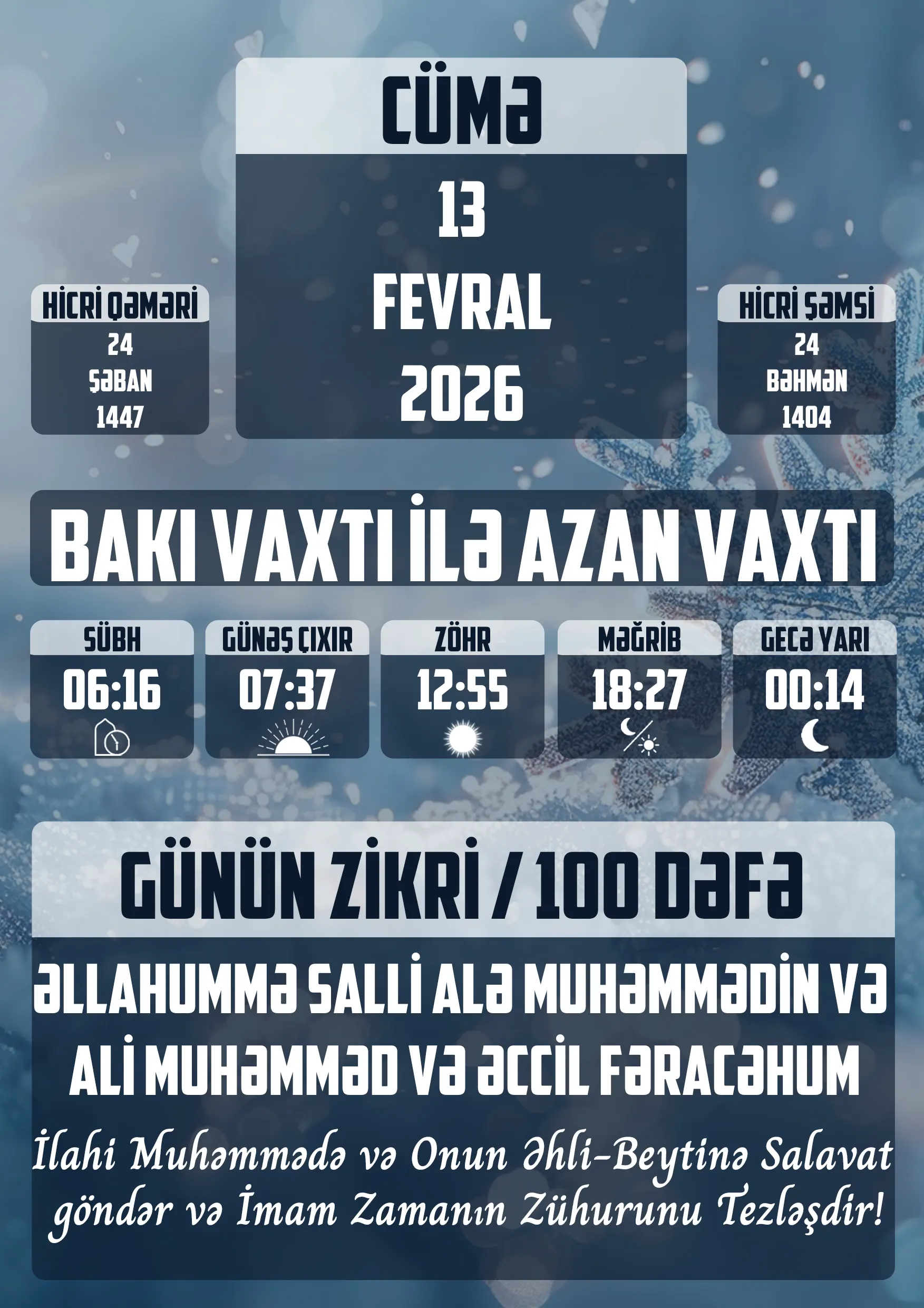 Cəmadiüs-sani ayının 13-ü Həzrət Əmirəl-möminin Əlinin (ə) fədakar həyat yoldaşı və Həzrət…