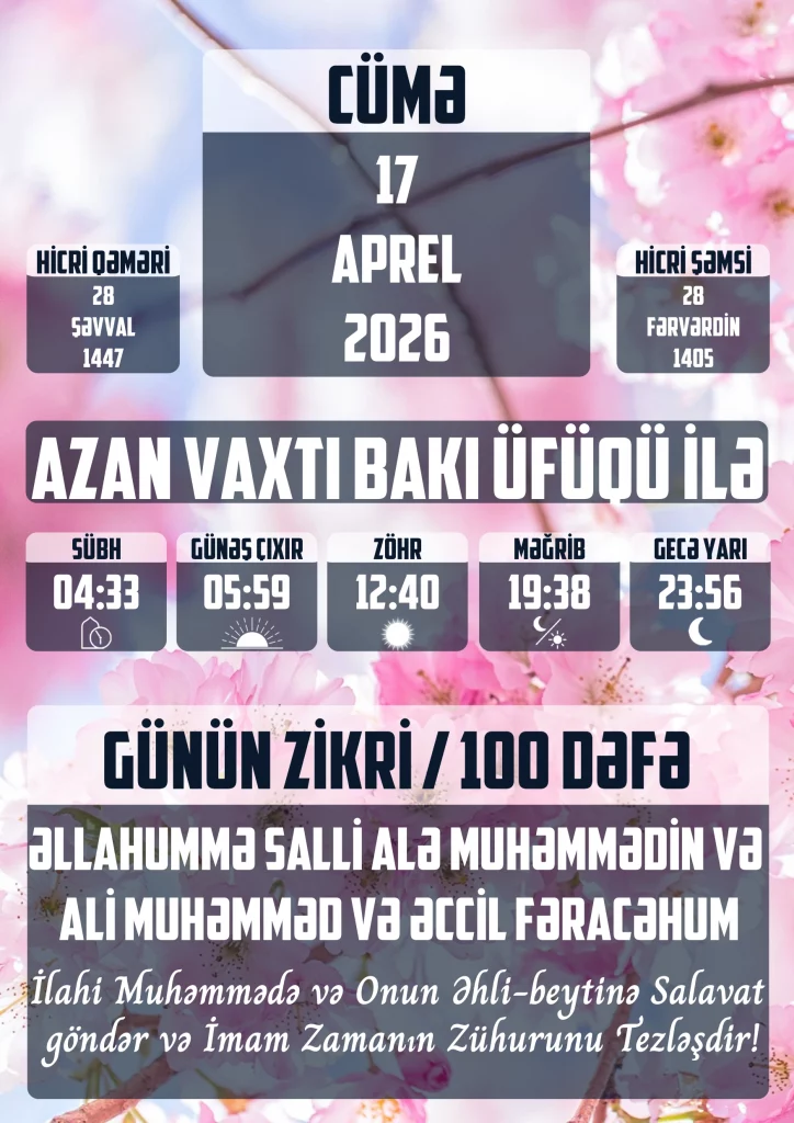 İslam dünyasında hörmətlə anılan Həzrət Məsumənin doğumu mənəviyyat və qadın dəyərlərinin simvolu hesab olunur.