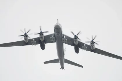 Rusiya Müdafiə Nazirliyi Tu-95MS strateji bombardmançı təyyarələrinin Berinq dənizi üzərində planlı uçuş…