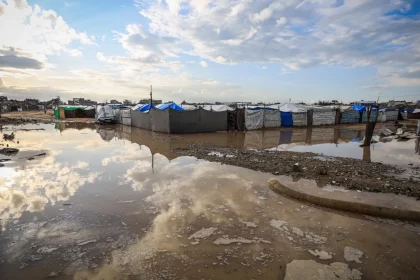 Qəzza zolağında şiddətli yağışlar səbəbilə yüzlərlə çadır daşqın altında qaldı, ailələr təhlükəsiz…